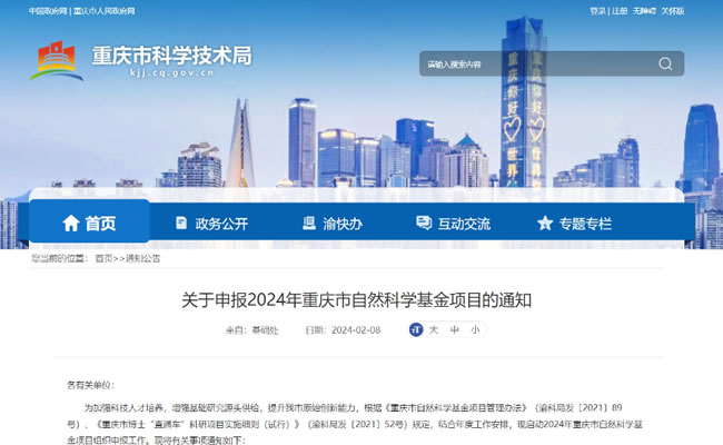 《關(guān)于申報(bào)2024年重慶市自然科學(xué)基金項(xiàng)目的通知》